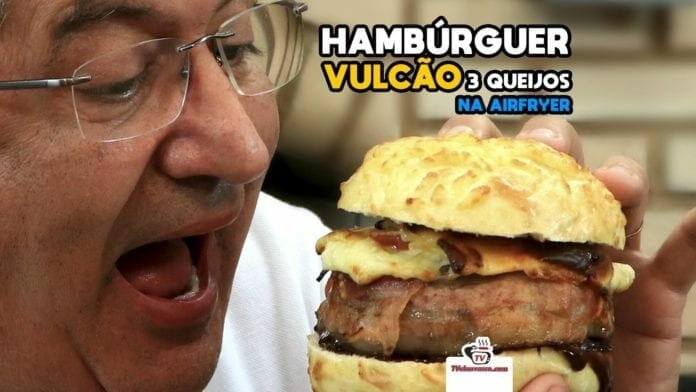Hambúrguer Vulcão 3 Queijos preparado na Airfryer. Uma receita deliciosa que fica pronta rapidinho. Confira como preparar esta delícia.