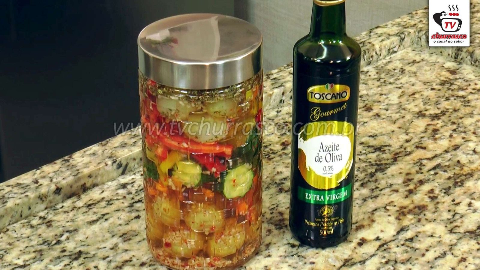 - Para montar a conserva, faça camadas com as batatinhas, as cenouras, os pepinos, os pimentões, as cebolas e as pimentas. Repita este processo até completar o vidro.