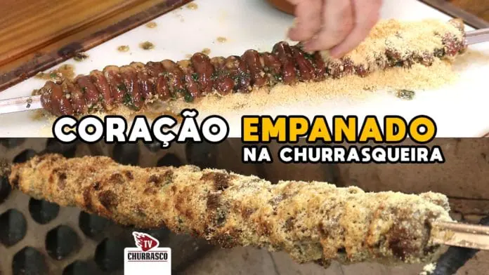 CORAÇÃO EMPANADO NA CHURRASQUEIRA, fica igual aqueles deliciosos espetos de churrascaria. Confira como é fácil de preparar!