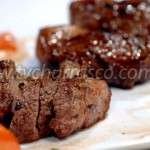 - Fatie o coxão duro em bifes altos, com mais ou menos 2 dedos de espessura, e tempere com sal grosso.