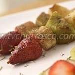 - Utilizando espetos de madeira para churrasco, monte os espetinhos na seguinte ordem: