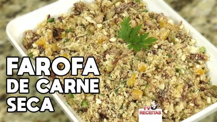 Receita de Farofa de Carne Seca deliciosa, feita com farinha de mandioca e BACON…