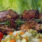 - Em um recipiente adicione o limão, o cheiro verde e o vinagre, acondicione as fatias de lombo, acrescente o alecrim e o sal.