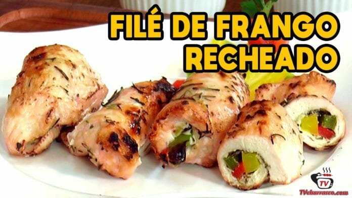 Filé de peito de Frango recheado, esta Receita com Peito de Frango é muito gostosa e prática de preparar, Valtão Oliveira preparou esta receita na churrasqueira, mas você também pode prepara-la no forno, apenas com algumas modificações.
